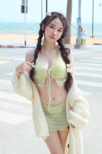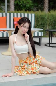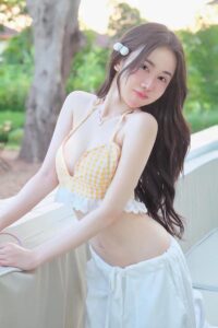 ริมแม่น้ำแห่ง หนึ่ง ด้วย ชุดว่ายน้ำ ทูพีช สีแดงยืนคู่กับเรือพาย ต้องบอกเลยว่าเป็นอีกเซ็ตที่ทำให้เราเห็นว่าคุณของน้องดีมาก ๆ หุ่นทรงนาฬิกาทรายเป็นแบบไหนอันนี้ทำได้ตามนิยาม ผลิตยาตอนใส่ชุดนอนไม่ได้นอนสีชมพู ก็น่ารักใช้ได้เลยที่สำคัญโนบราด้วยแต่แปะจุกไว้หน่อย