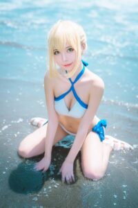 เราชอบชุดนี้ที่สุด เหลือเพียงแค่ชุดชั้นในสีขาวลายลูกไม้เท่านั้นทั้งบรา และ บิกินี่ เซ็กซี่มาก ใครที่เป็นแฟน การ์ตูน เรื่องนี้น่าจะรู้ว่าเป็นการ คอสเพลย์ ตัวละครไหน